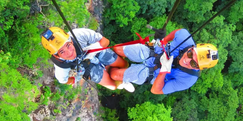 *Combo rapel + trilha Adventure* é uma trilha de 4,5 KM com paradas para banho nas cachoeiras. São 8 cachoeiras + praia da boca da onça, 5 pontos de banho e no final pratica o Rapel, descida, de 90 metros de altura. Duração em media do passeio de 4 a 5 horas.